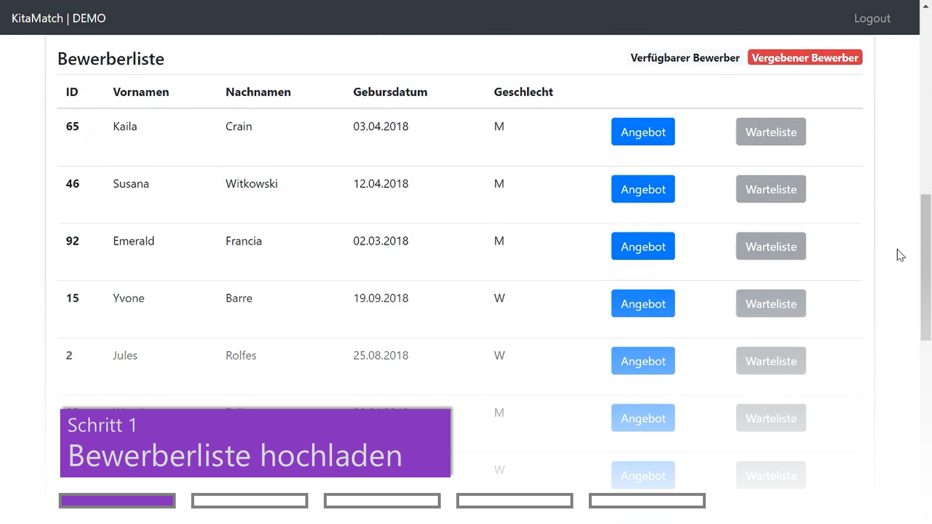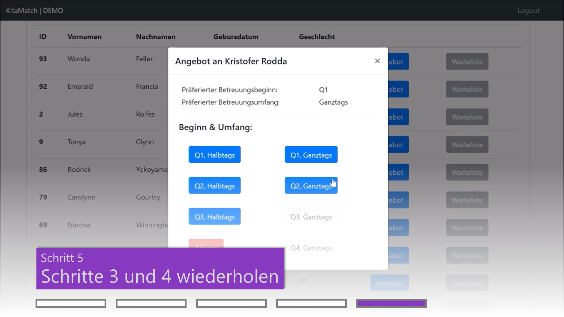 In der Universitätsstadt Tübingen werden die Kita-Plätze anhand von Vergabekriterien und den Betreuungswünschen der Eltern vergeben. Ein händisches Matching ist nicht ohne systemimmanente Vergabefehler möglich - und noch dazu nicht mit vertretbarem Personalaufwand leistbar. Daher nutzt die Universitätsstadt Tübingen das algorithmusbasierte Tool "KitaMatch" für die trägerübergreifende Vergabe von Kinderbetreuungsplätzen.Zielsetzung