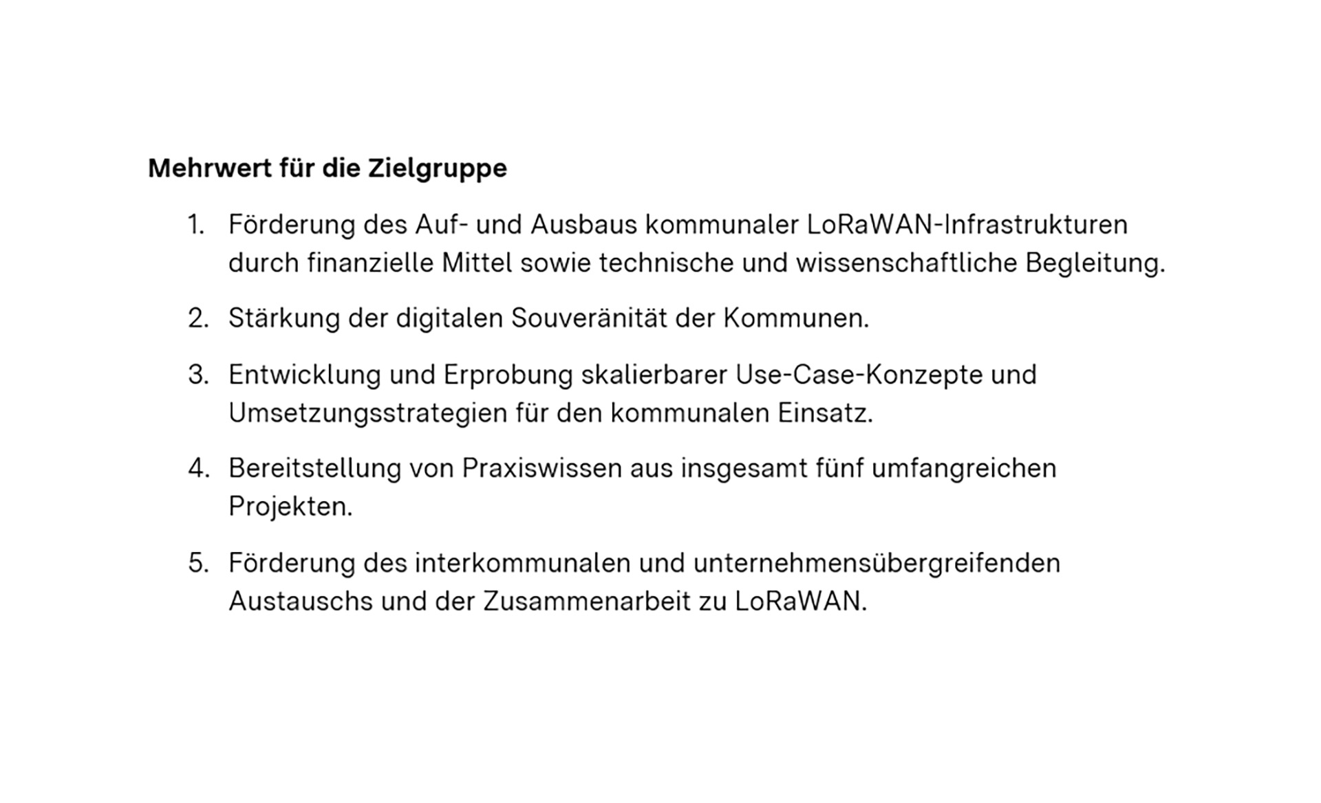 Stärkung kommunaler Infrastrukturen und Kompetenzen im Bereich IoT-Technologien mit Fokus auf das Netzwerkprotokoll LoRaWAN, um innovative, datenbasierte Anwendungen in BW zu fördern.Zielgruppe